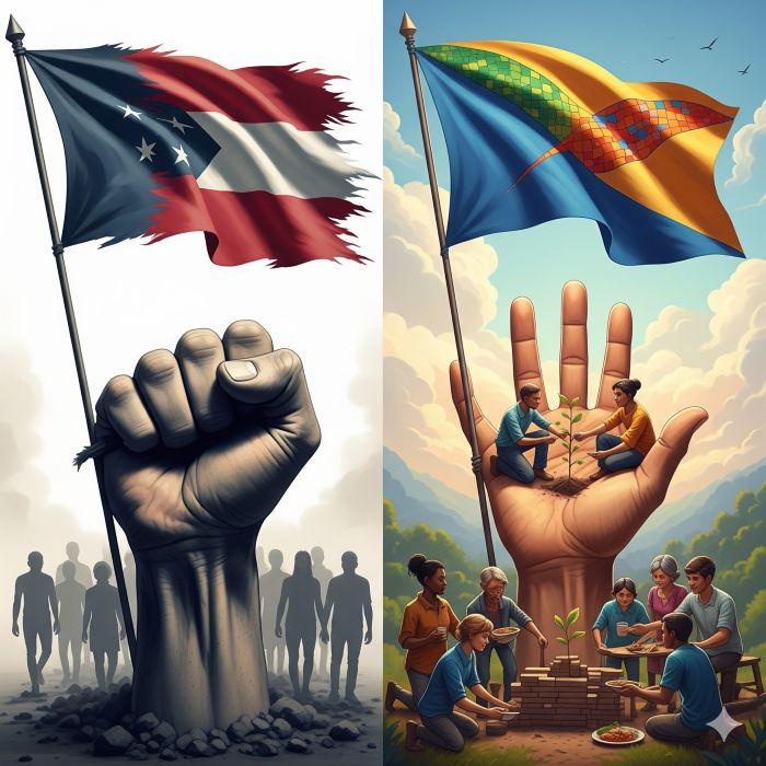لە بەرامبەردا، نیشتماندۆستی هەستێکی مرۆڤدۆستانەیە بۆ خۆشەویستی و گرنگیدان بە شوێنی لەدایکبوون و ژیانت، کولتوور و خەڵکەکەت. نیشتماندۆستی باڵادەستی و دوژمنایەتی بەرامبەر بەوانی تری نییە و لەسەر بنەمای هاودەنگیی بەکۆمەڵ و ڕێزگرتن لە فرەچەشنی دامەزراوە.